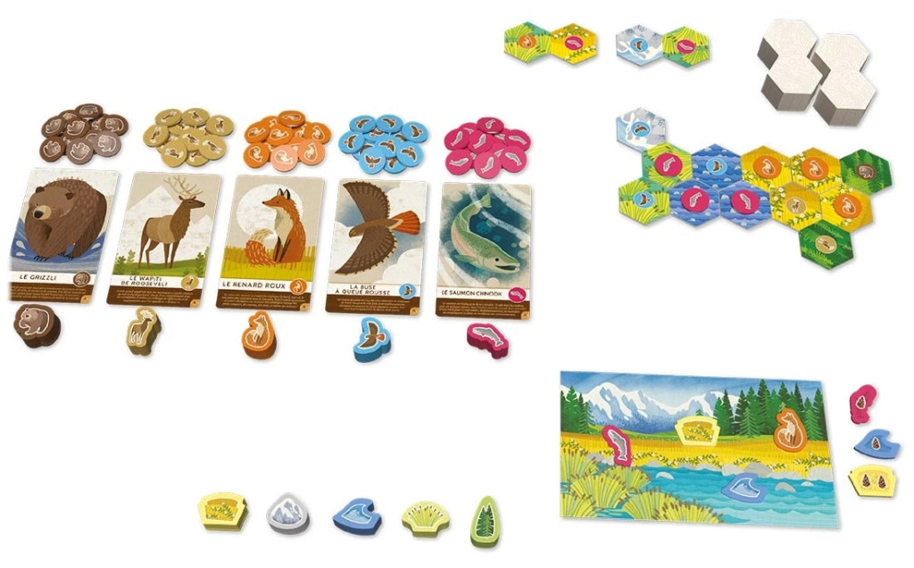 Adaptation pour Marmots du Spiel des Jahres 2022, Cascadia Junior va droit à l’essentiel. Choisissez et placez vos tuiles pour créer des groupes d’animaux identiques, et constituez les plus grandes zones de forêts, prairies ou rivière, pour gagner un maximum de… pommes de pin.