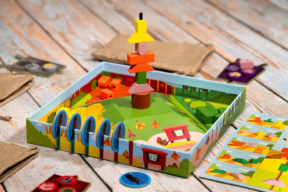 Marie et Wilfried Fort sont décidément très prolifiques cette année et ils proposent ici un jeu de mémoire et de motricité fine magnifiquement édité par Kiwizou. Collectez des tuiles Escaliers de même couleur, tentez d’agrandir les tours du château en évitant l’éboulement, et devenez l’architecte préféré du roi.