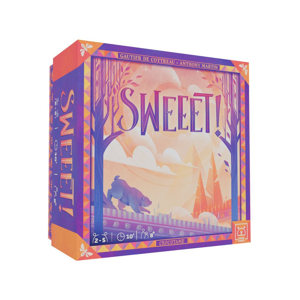Derrière un magnifique travail graphique tout en douceur signé Crocotame, « Sweeet! » propose un petit jeu familial de mémoire et de prise de risque. Au croisement d’un Flip 7 pour son côté stop ou encore basé sur les chiffres, et d’un Gold pour le principe de Memory revisité, voilà un jeu qui réunit avec plaisir toute la famille autour de la table. Un jeu accessible bien avant les 8 ans qu’indiquent la boîte…