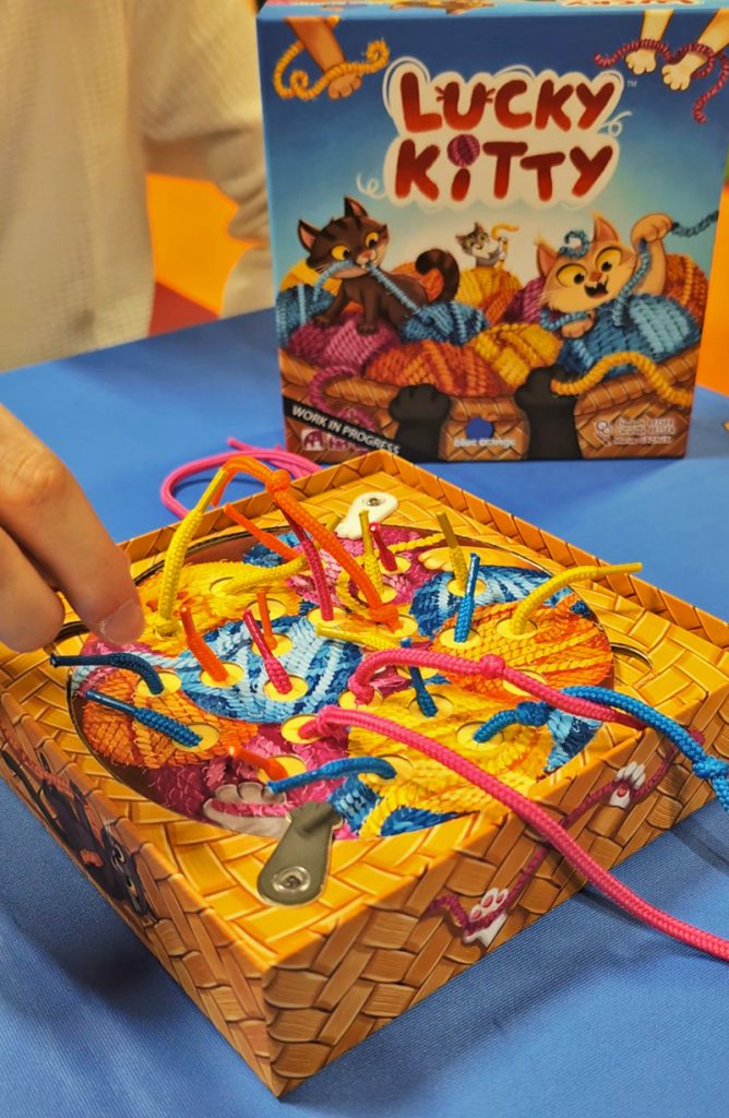 Vos Marmots ont peut-être déjà succombé à ces attractions de fête foraine où il faut tirer sur des ficelles pour essayer de gagner d’énormes peluches… Méli Miaou, c’est un peu ce principe adapté à un jeu de société, mais où à la place d’une peluche, vous gagnez la ficelle…