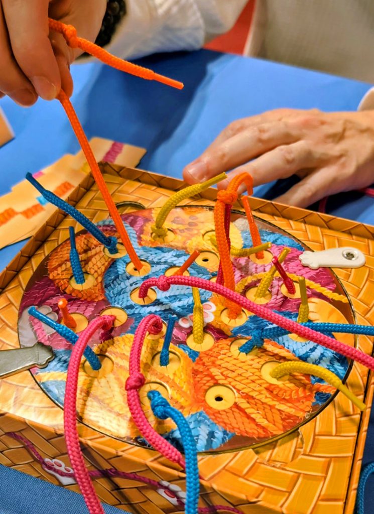 Chaque joueur a devant lui, un tas de cartes. À votre tour, vous en révélez une. Elle indique une couleur de ficelle qui vient s’ajouter à celles que vous avez précédemment révélées. Vous pouvez alors tirer sur l’une des ficelles correspondant à vos cartes. Si vous révélez un nœud, vous arrêtez immédiatement de tirer et le tour passe au joueur suivant. Si vous arrivez par contre au bout de la ficelle, vous la récupérez et défaussez toutes les cartes de cette couleur que vous possédez. Le premier joueur à avoir défaussé tout son paquet de cartes gagne la partie.