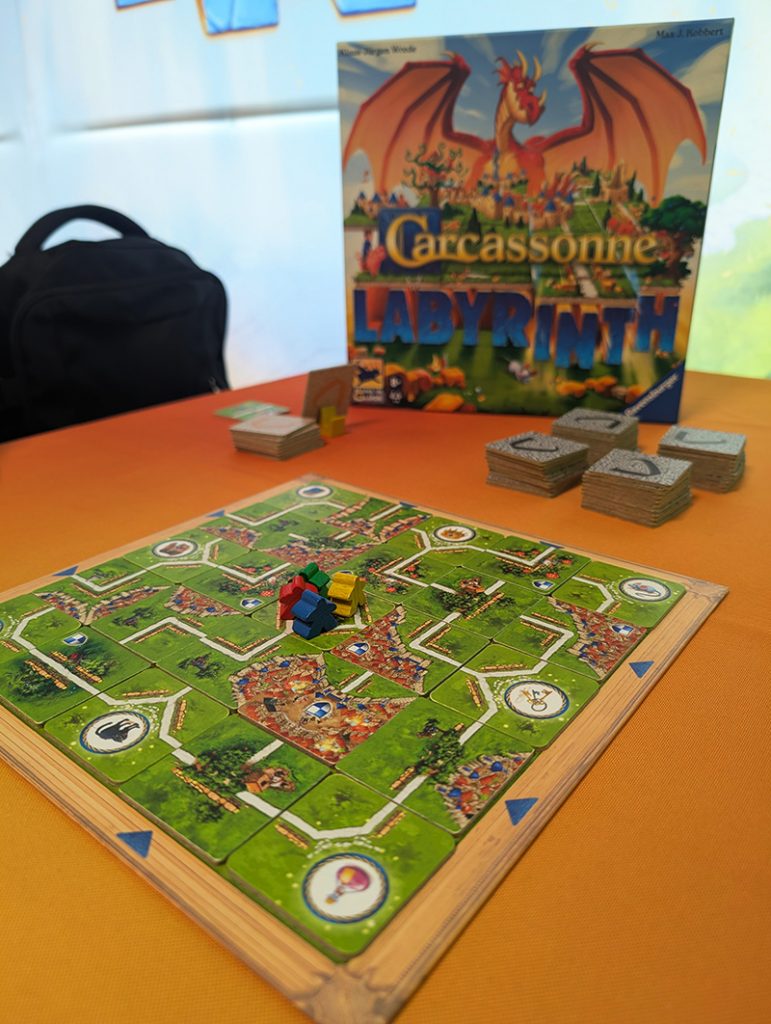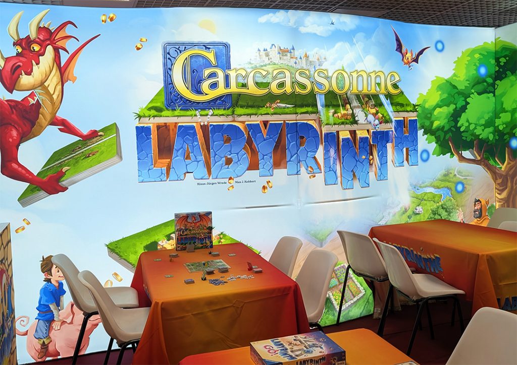 Celui-là, on ne l’avait pas vu venir… Imaginez notre surprise en croisant sur le stand de Ravensburger, une immense bâche annonçant « Carcassonne Labyrinth ». Après avoir dérivé son concept dans le monde des Pokémon, de la Reine des Neige, de Super Mario… c’est l’univers de Carcassonne qui allait être passé à la moulinette par Ravensburger. Triste monde ludique…
