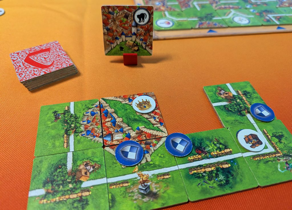 Sans surprise, le plateau avait beau être un peu plus petit que l’original, les couloirs du labyrinthe avaient simplement laissé place aux chemins et aux murailles de Carcassonne. Un détail m’avait échappé : l’énorme tas de tuiles à côté du plateau. C’est pourtant là que se trouvait tout le twist de ce jeu.