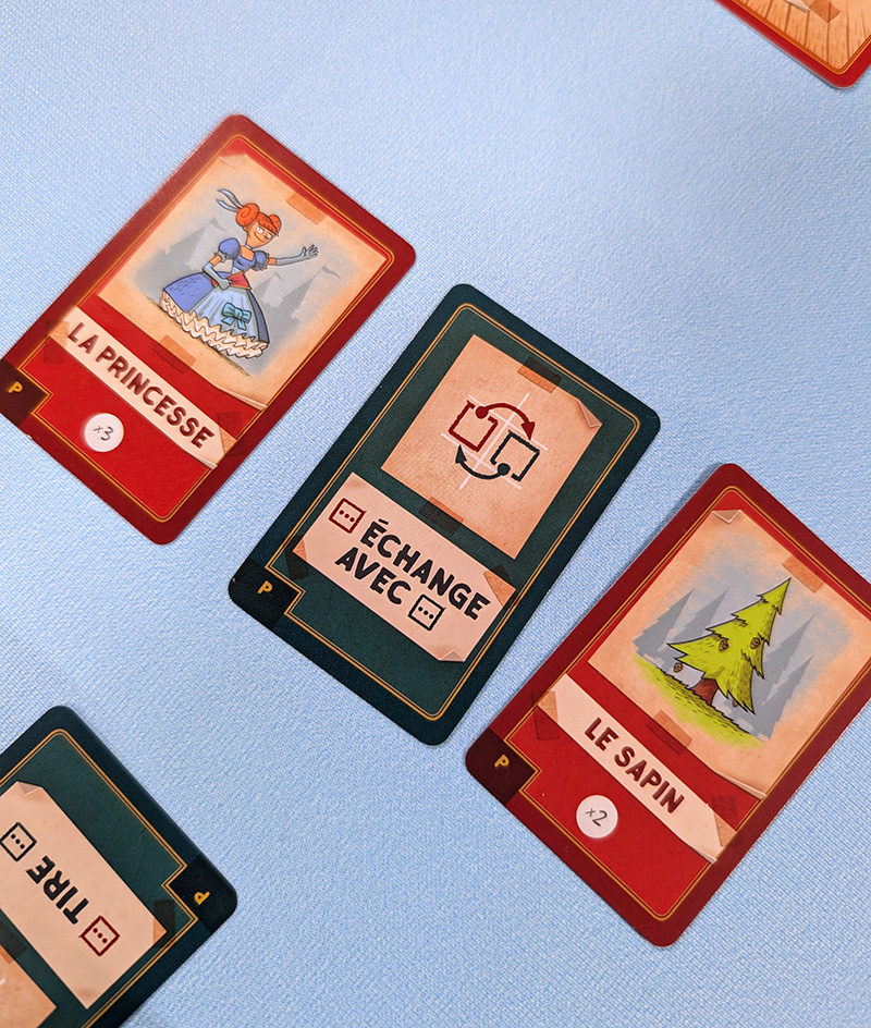 C’est là qu’intervient la mécanique particulièrement maline de ce jeu. Vous devez discuter et combiner vos cartes personnages en main avec les cartes Verbe sur la table, pour « verbaliser » des actions… parfois très absurdes. Des actions du genre « Le troll mange le sapin » ou « Le rocher pousse la princesse »…
