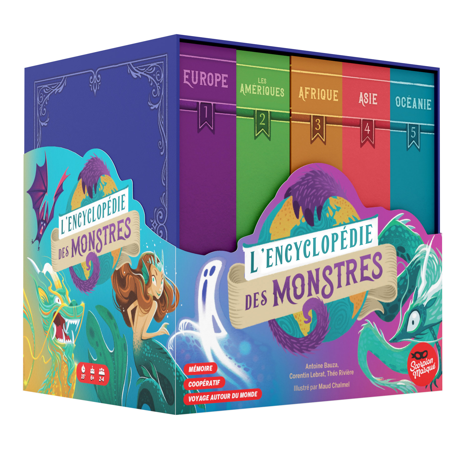 Et si le jeu porte le nom d’ « Encyclopédie », c’est qu’il va vous emmener dans 15 destinations différentes, sur 5 continents, avec à chaque fois des Monstres locaux ainsi que des variantes qui viennent renouveler les parties.