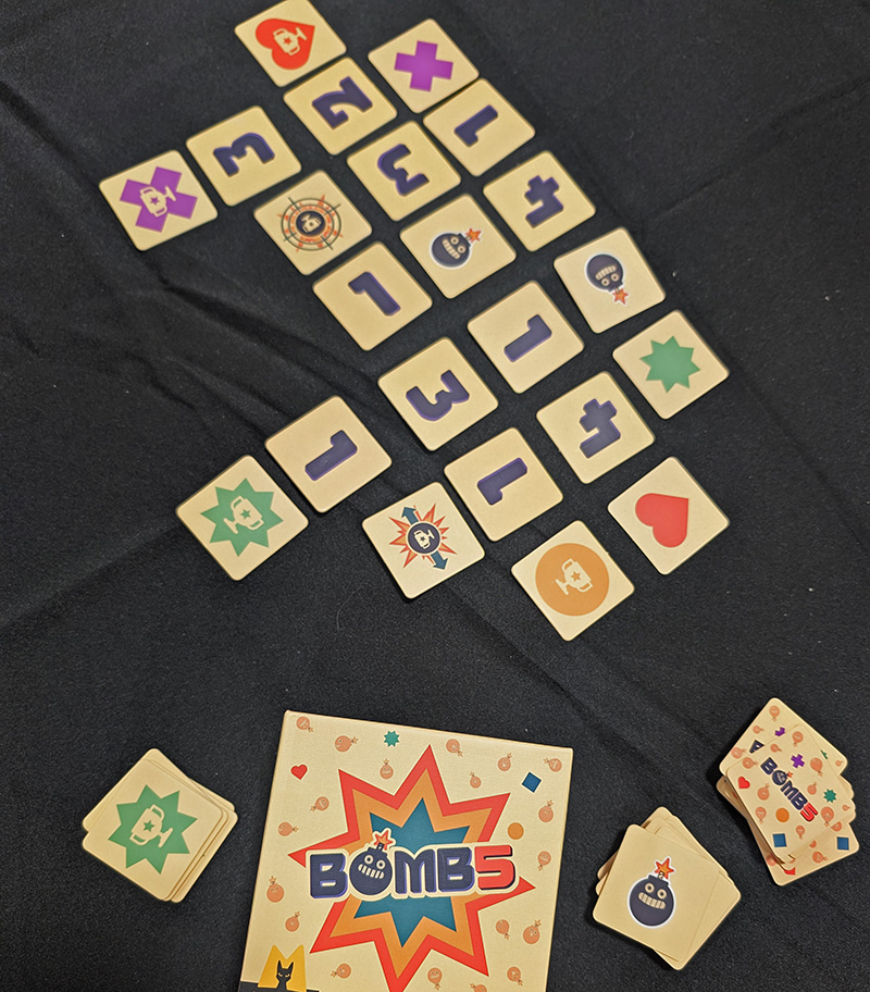 Quand on découvre le matériel, on se dit que Bomb5 va être une simple adaptation du Démineur sur table. Heureusement, il est bien plus que ça…