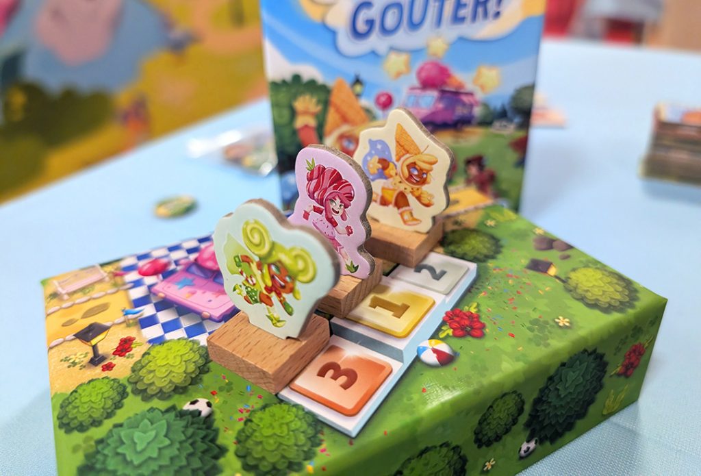Basé sur une idée très astucieuse de dominos à double fonction, « À l’heure du goûter » ressemble à un jeu qui n’a pas été au bout de ce qu’il avait à proposer. Il est loin d’être déplaisant, propose des petits choix tactiques aux Marmots de 5 ans, fait vivre des remontées parfois épiques, mais les parties sont bien trop longues et on finit par se lasser. Comble de l’ironie, la variante ajoute un dé à ce jeu de course qui avait réussi à s’en débarrasser…