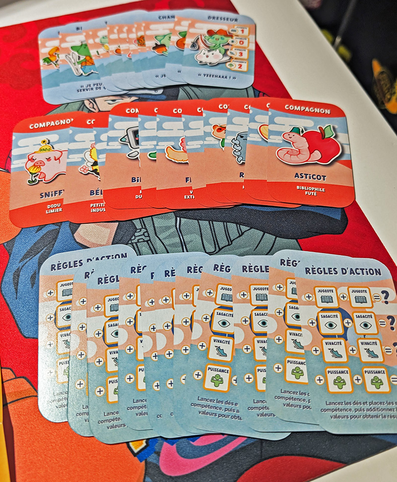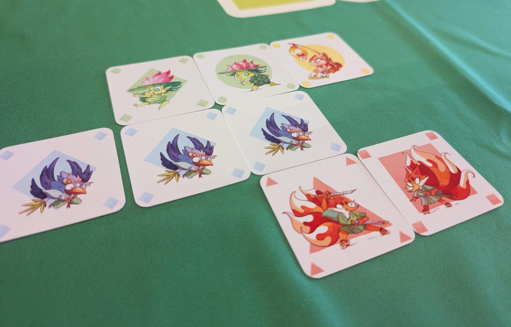 Dans un tout autre style, Combomino vous propose de construire une grille à l’aide de cartes Apprentis Ninjas de différentes formes et couleurs. Formez des lignes ou des carrés de 4 Apprentis Ninjas de même couleur ou de même forme pour gagner un maximum de points avant la fin de la pioche.