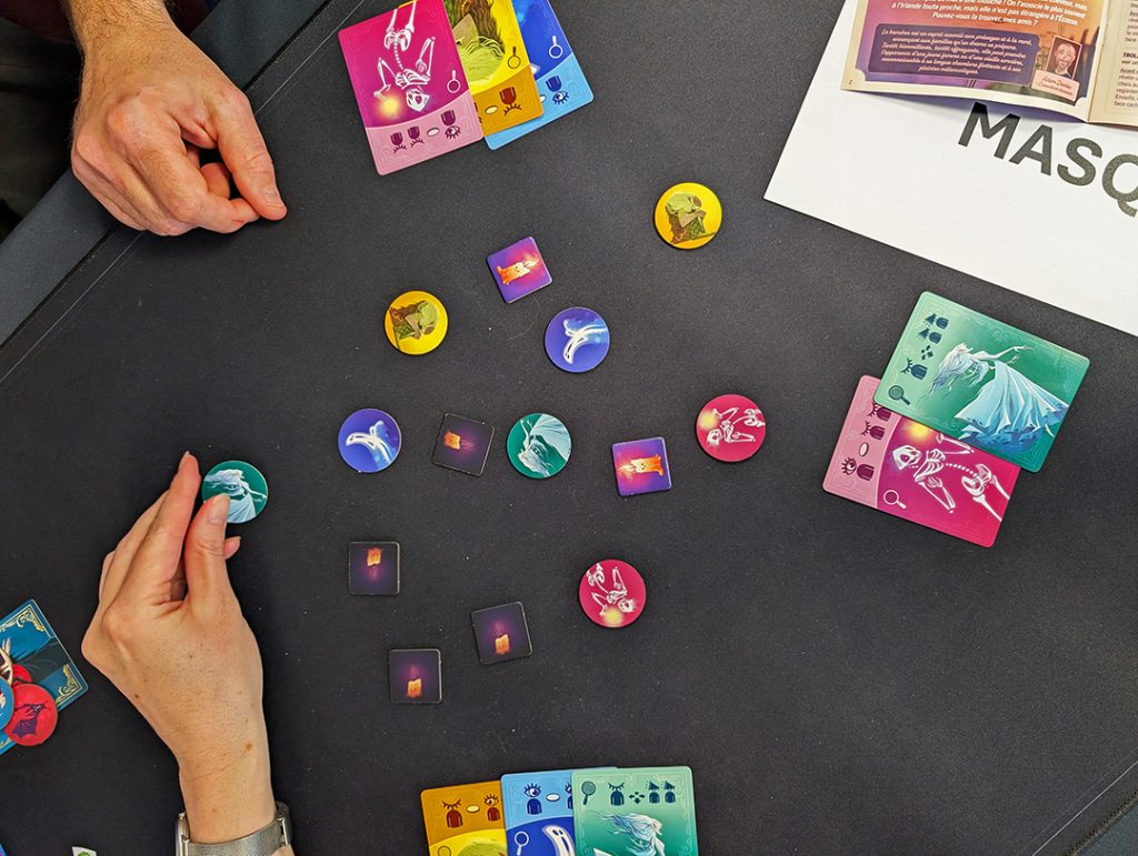 Le principe est pourtant très simple : à chaque tour, vous devez retrouver l’un des monstres que vous avez en main parmi les jetons posés au centre de la table. Chaque monstre vous offre un pouvoir. Il peut vous aider en vous permettant, par exemple, de regarder ce qui se cache sous une tuile. Mais il peut aussi vous imposer une contrainte. Vous devrez, par exemple, retrouver la Banshee, les yeux fermés, aidé par les indications vocales de vos coéquipiers.