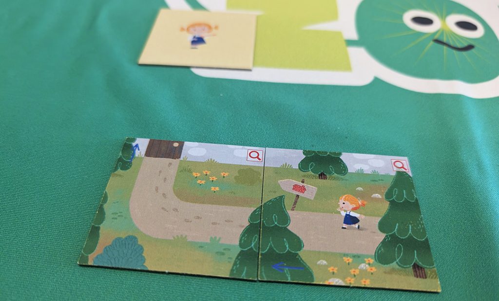 Tout commence par une première tuile. L’enfant doit faire preuve d’observation ou de déduction pour la relier à l’un des objets ou personnages présents au verso des autres tuiles. Il retourne alors la tuile qu’il pense être la bonne et qui fait avancer l’histoire.