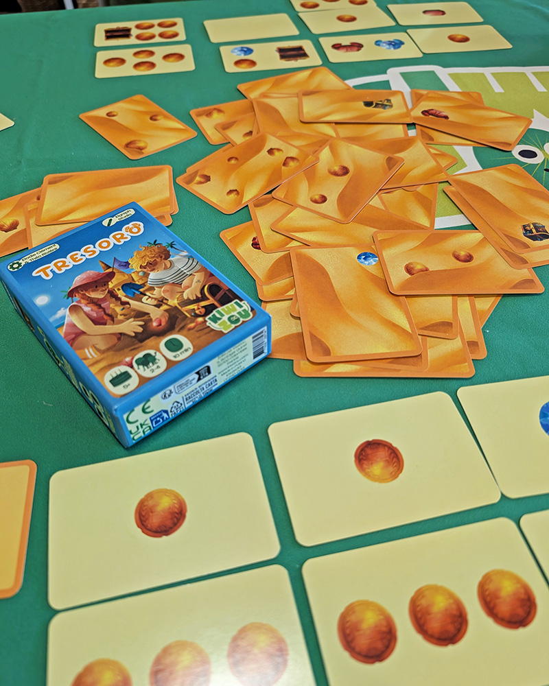 • Tresoro, un jeu d’observation et de collection où l’on va fouiller dans un tas de cartes étalées sur la table pour essayer d’y trouver le les plus beaux trésors.
