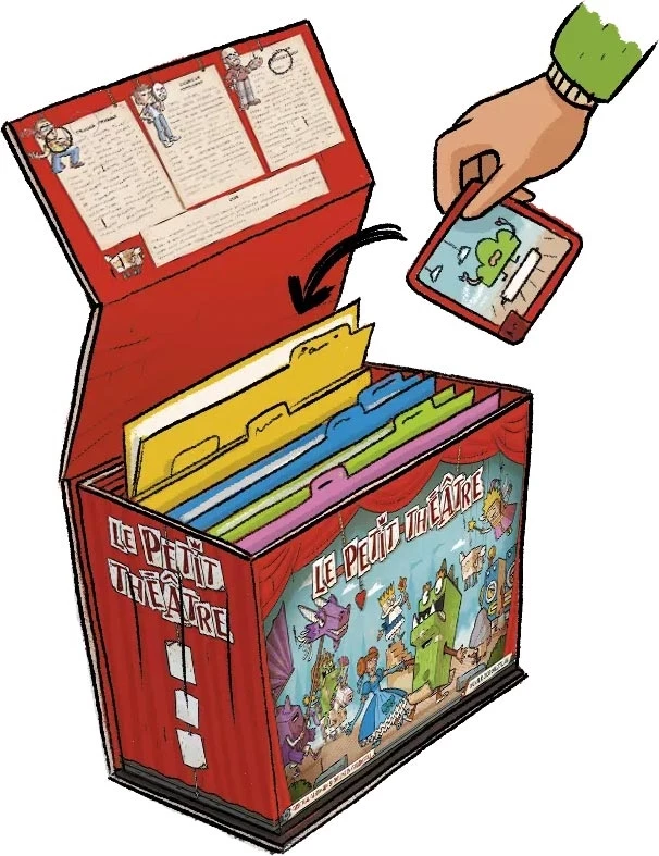 Après « L’encyclopédie des Monstres » voici un second jeu qui se démarque par son format très original. Dans ce coffret, vous allez mettre en scène 3 pièces de théâtre divisées en 3 actes, chacun d’eux faisant l’objet d’une pochette remplie de matériel, principalement des cartes.
