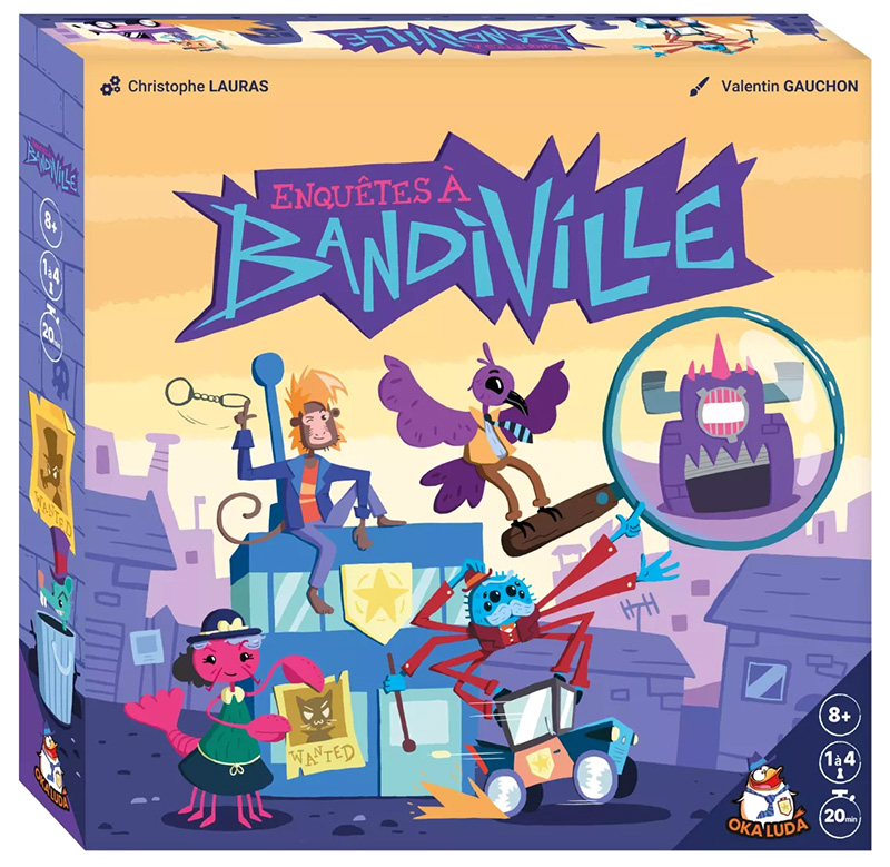 Lancez les dés pour arpenter les rues de Bandiville et y retourner des tuiles. Trouvez-y des preuves et inculpez 6 grands méchants avant que leurs complices n’aient fait le tour de la ville dans leur camionnette.
