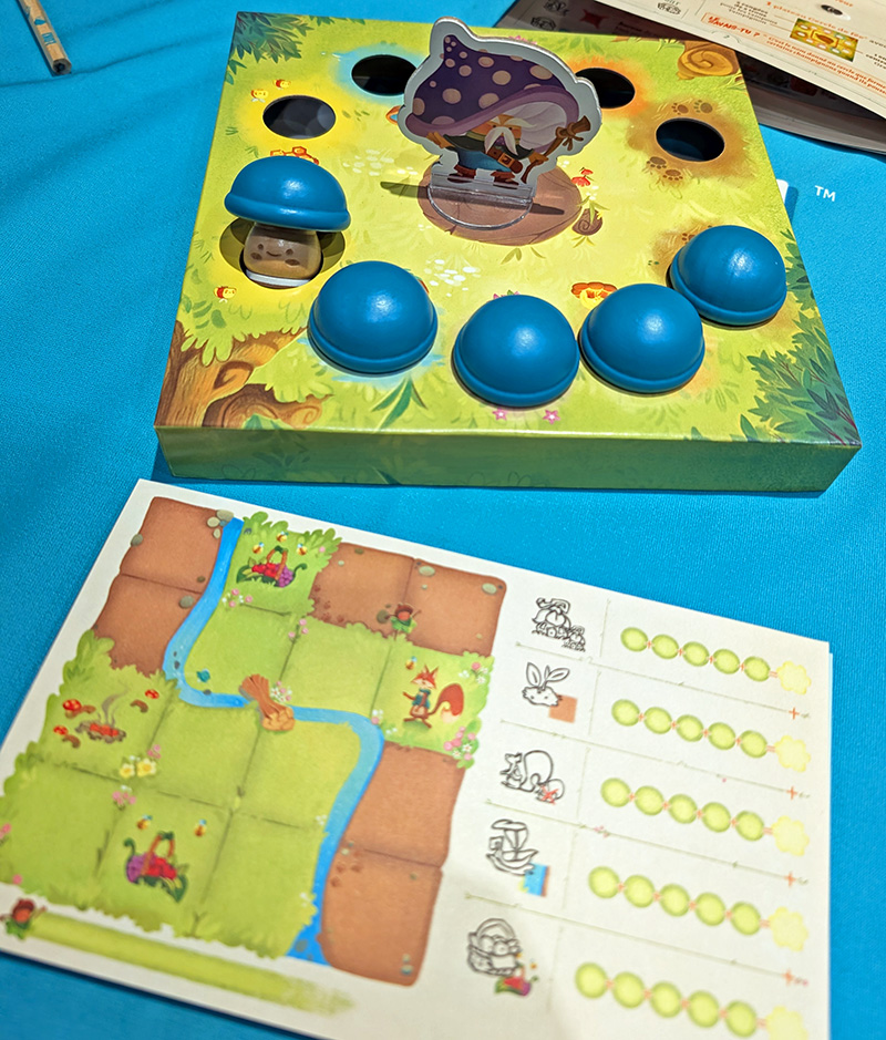 On commence avec « Le repaire des Tampignons ». Un truc & write à base de tampons. On pense forcément à « Roule Tampouille » de chez Space Cow (qui nous avait laissé sceptique), mais c’est surtout l’excellent « Polynimaux », sorti l’année dernière, auquel on pense quand on découvre le matériel.