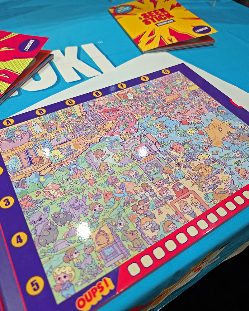 Sur son stand à Cannes, Loki avait mis le paquet pour mettre en scène sa nouveauté « Les cubes-puzzle de Nono ». En plus d’une version XXL du jeu, une tour de cubes géants venait planter le décor.
