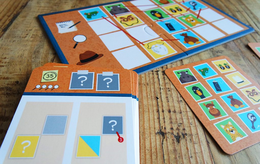 Pour cela, ils ont à disposition un tableau d’enquête commun à tous les défis, et une carte Indices spécifique à chaque enquête. Celle-ci leur indique, par exemple, que le déguisement à découvrir se trouve à droite d’un suspect, ou qu’il est relié à 2 autres éléments par des fils rouges.
