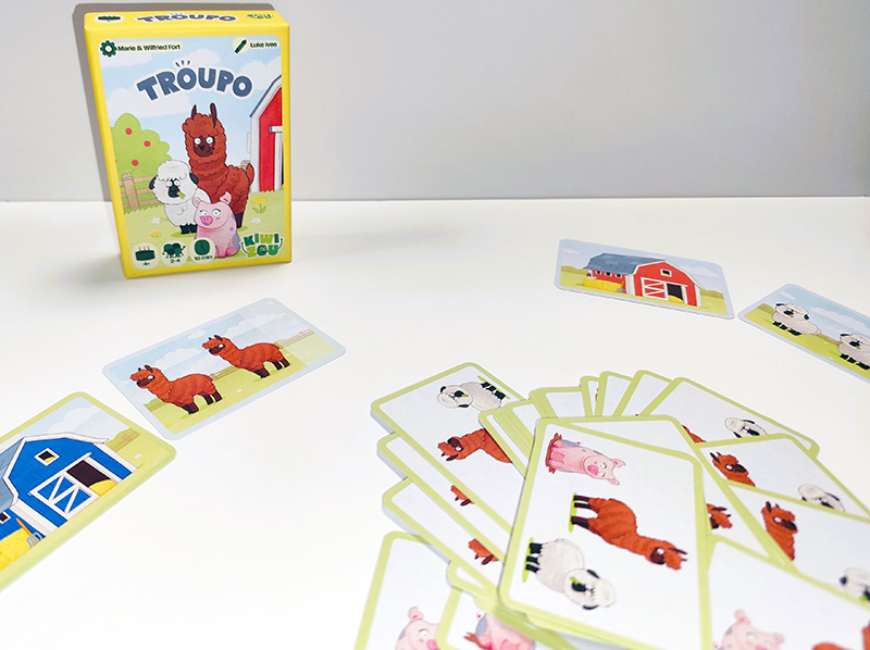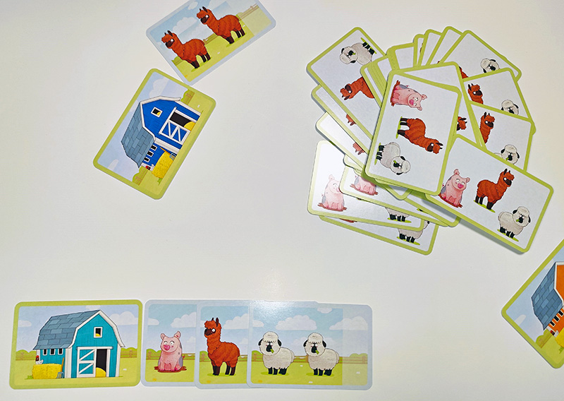 34 cartes sont étalées au centre de la table, représentant un troupeau d’animaux composé de moutons, de cochons et… de lamas. Essayez d’en faire rentrer un maximum dans votre étable sans les effrayer.